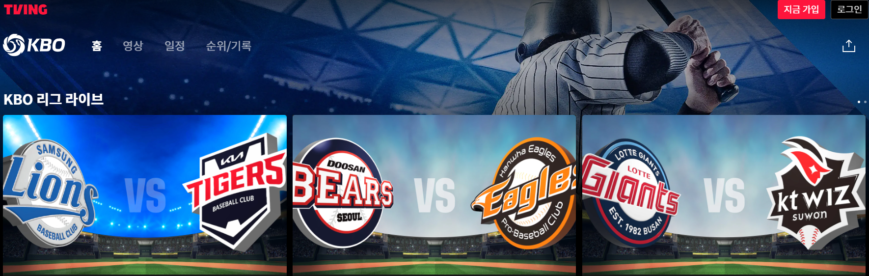 하지만!!!! 티빙으로 시청이 어려우시더라도 넘 걱정마세요. 티비 채널로도 2024 프로야구 무료 중계를 보실 수 있습니다. KBO 홈페이지에 들어가시면 각 일정들과 중계 채널을 보실 수 있으니 아래를 클릭 하시어 참고 하시길 바래요!!